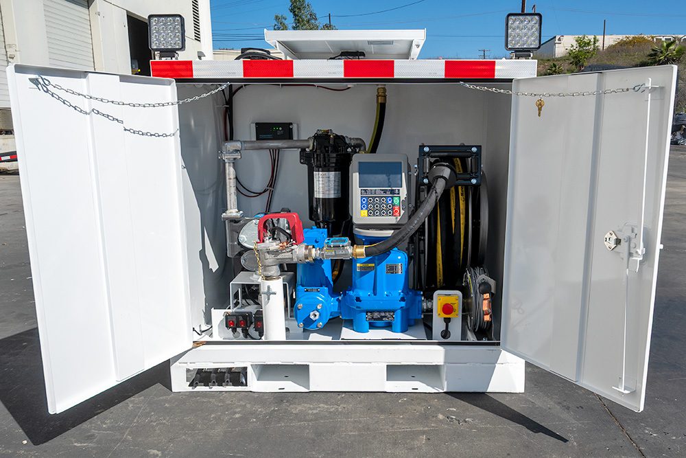 This aviation package features four single-wall 119-gallon stainless steel tanks. All the tanks are mounted on a heavy-duty steel platform and can be easily moved using built-in forklift pockets. The M-Series skids can be securely installed on a truck or trailer and are fully compliant for transporting Jet-A fuel on public roads—no Hazmat certification is required.